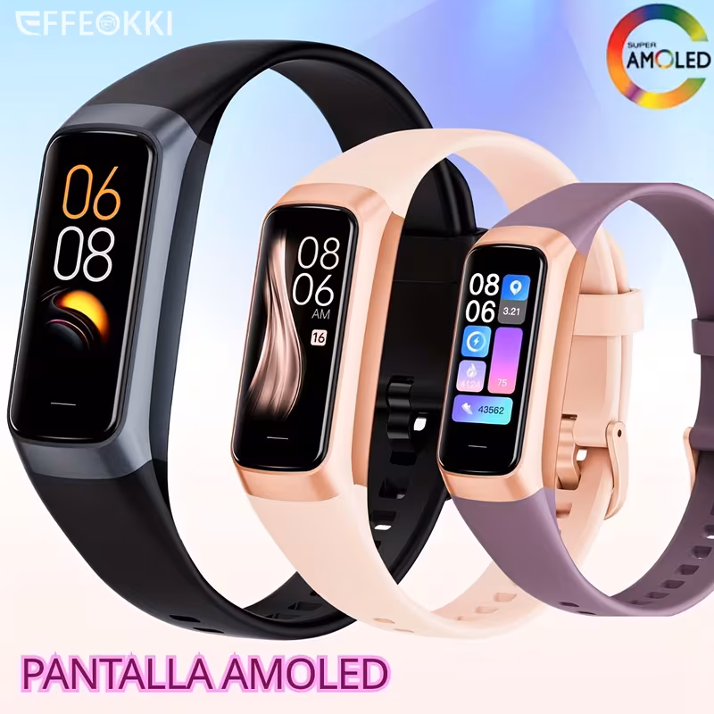 AFFEOKKI Smartwatch de fitness con pantalla AMOLED para hombres y mujeres – Modos deportivos múltiples, rastreador de pasos, cronómetro, alertas de mensajes, rastreador de calorías, registro diario, compatible con iPhone y teléfonos Android, correa de silicona, carga USB, conectividad inalámbrica | Smartwatch moderno