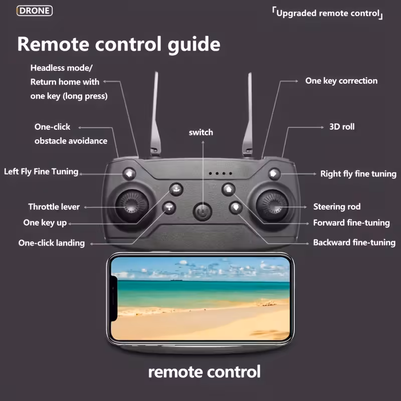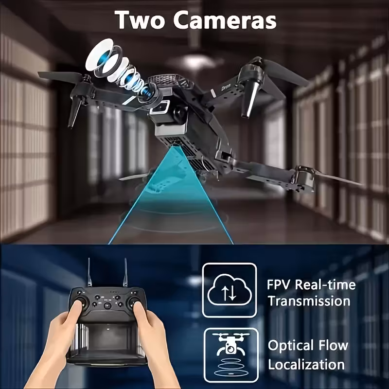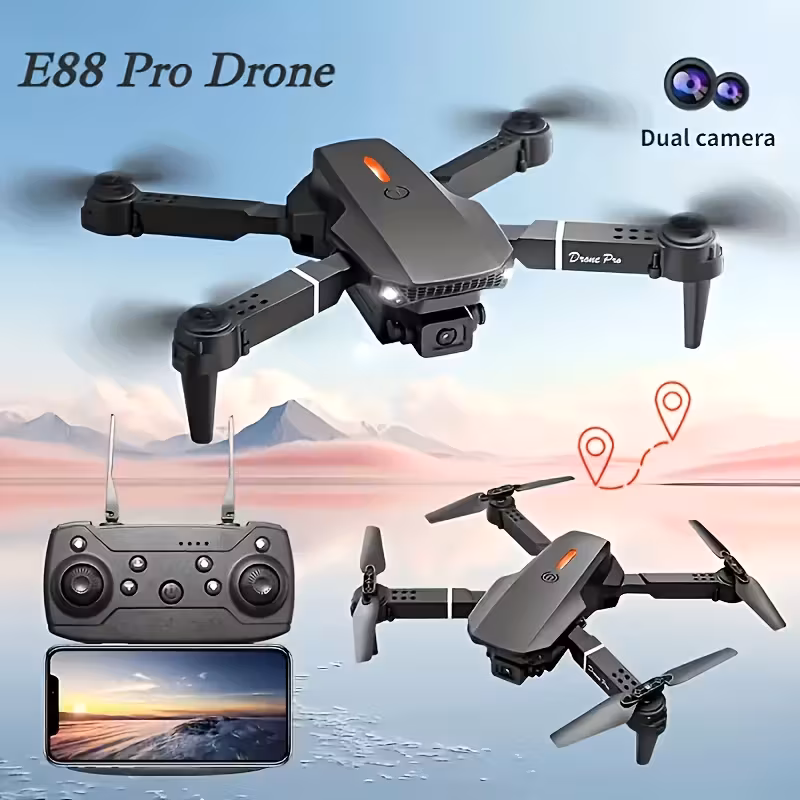 E88PRO Dron Profesional con Cámara Dual, Despegue y Aterrizaje con Una Tecla, Transmisión de Imágenes por App, Acrobacias Geniales Rotación de 360°, Estabilidad de Hovering con Flujo de Luz, Cuerpo Plegable de ABS